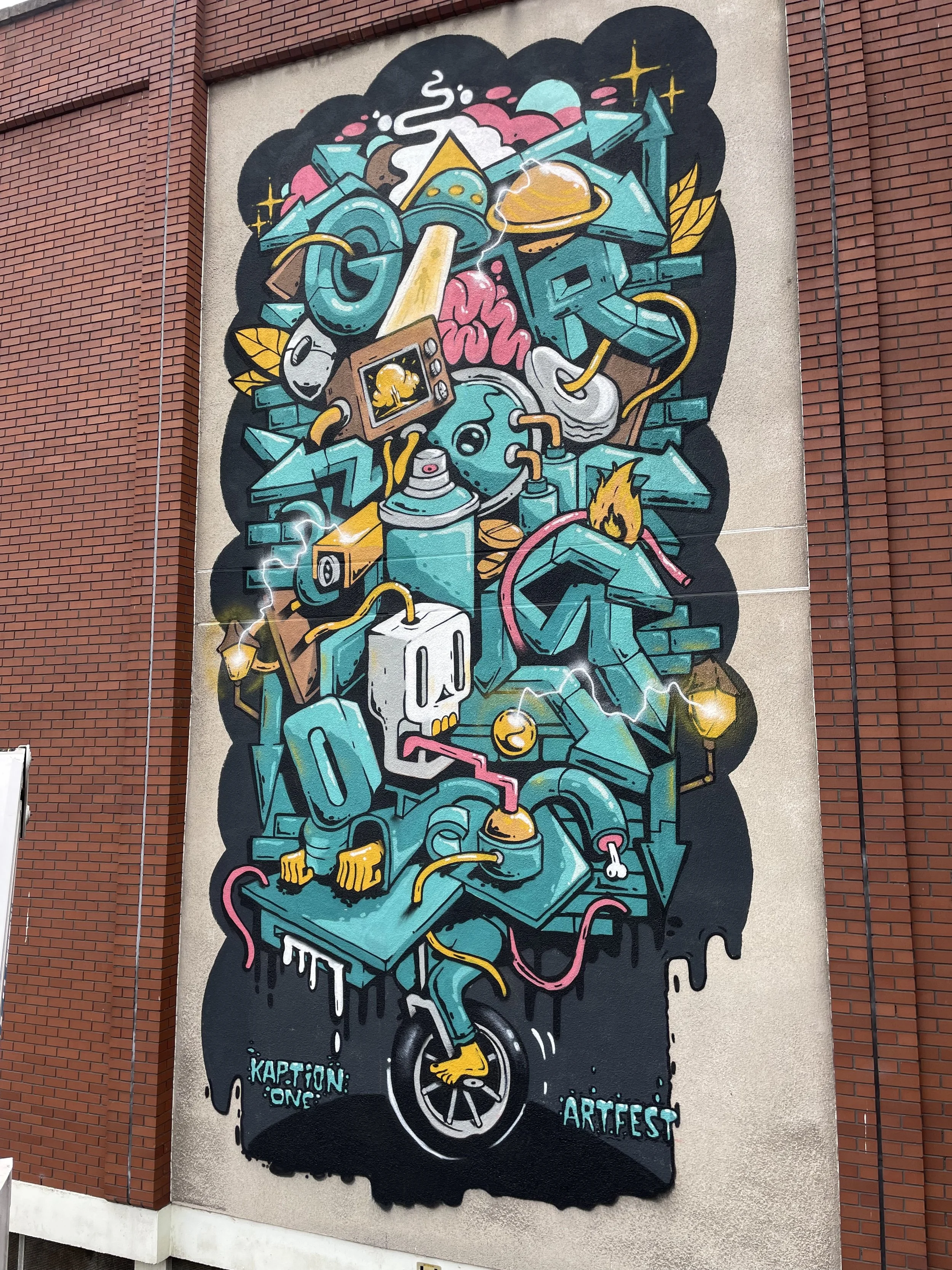 2025 marked the second edition of Nottingham Art Fest, a city-wide celebration of contemporary art featuring nationally and internationally recognised artists. I was selected to create a large-scale mural presenting a personal body of work exploring the weight and societal impact of social media and misinformation.